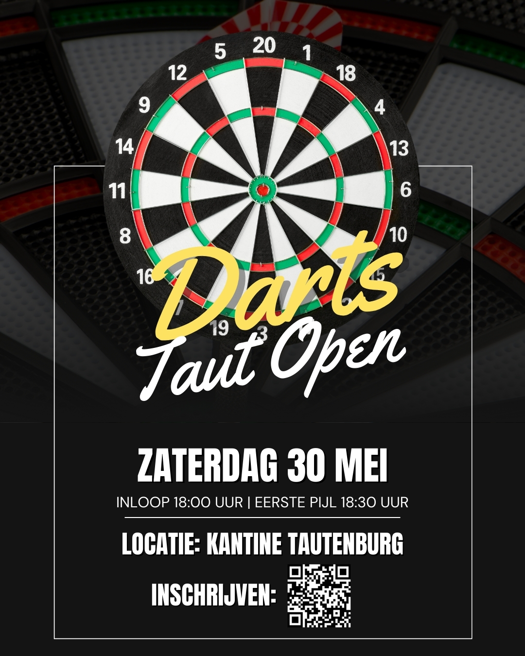Het is tijd voor het Taut Darts Open 2026. Na jaren van stilte staan we aan de vooravond van de tweede editie van het dartstoernooi bij Tautenburg. Wie worden de opvolgers van Alex de Lorijn en Mark Heus, of weten ze hun titel te prolongeren? Ga de strijd aan en doe mee op zaterdag 30 mei 2026!
